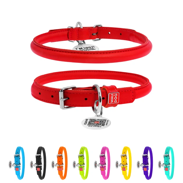 Нашийник для собак шкіряний WAUDOG Glamour з QR паспортом, круглий, Д 13 мм, Д 45-53 см, червоний