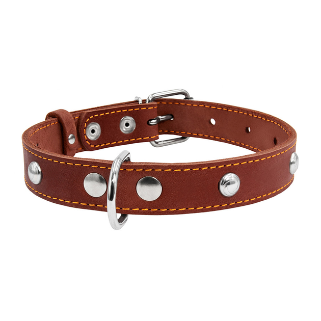 Шкіряний одинарний нашийник CoLLaR з прикрасами Ш 25 мм Д 38-50 см Brown (02236)