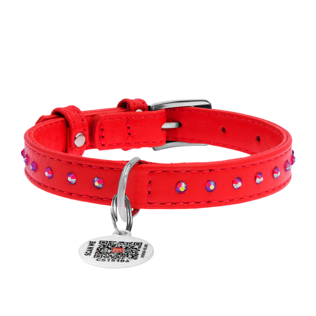 Шкіряний нашийник для собак WAUDOG Glamour з клейовими стразами і QR паспортом Ш 12 мм Д 21-29 см Red (32683)