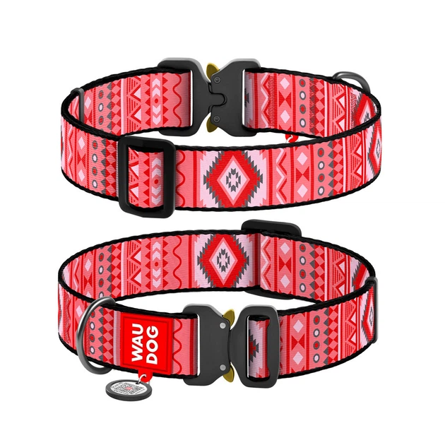 Нашийник для тварин WAUDOG Nylon з QR паспортом "Етно червоний" металева пряжка-фастекс XXL (4535-0133)
