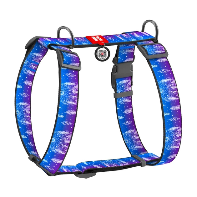 Шлея для собак анатомічна H-подібна WAUDOG Nylon з QR-паспортом, малюнок "Ловець снів", пластиковий фастекс, XL, Ш 35 мм, А