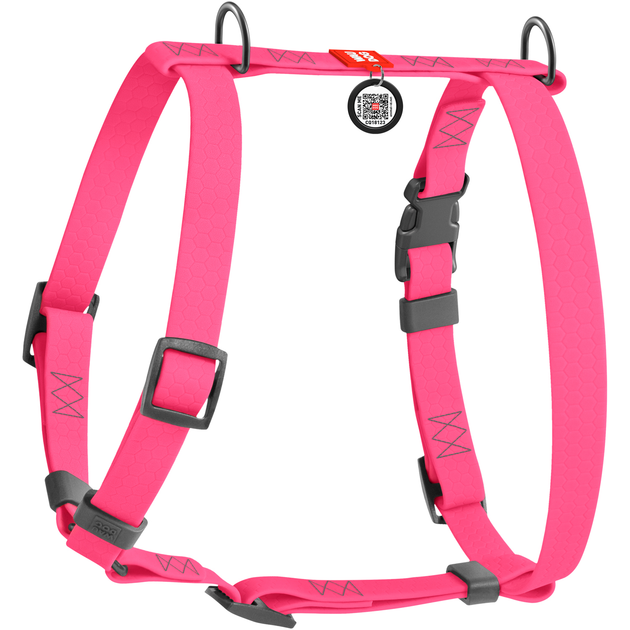 Шлея для собак водостійка анатомічна Н-подібна WAUDOG Waterproof з QR паспортом, пластикова пряжка-фастекс, рожева, розмір S