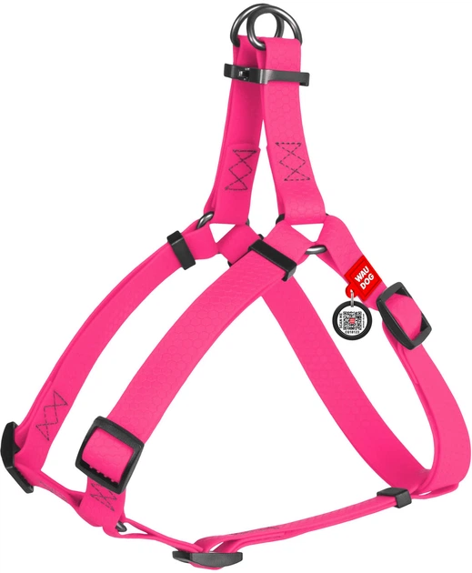 Шлея для собак водостійка WAUDOG Waterproof з QR-паспортом 30-39 см Рожева (27637Collar)