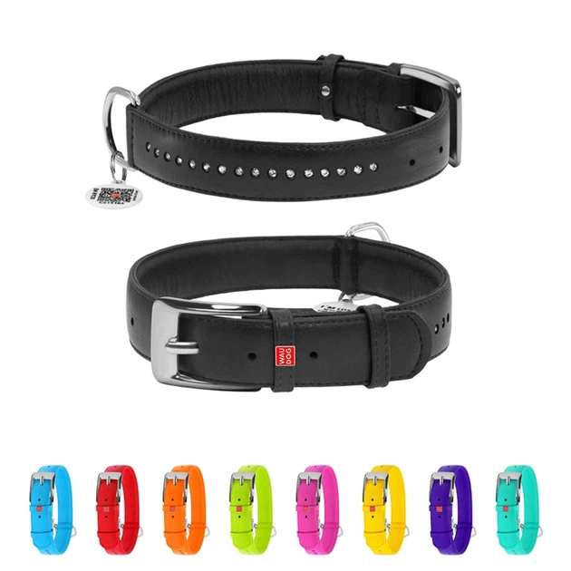 Нашийник для собак шкіряний WAUDOG Glamour з QR паспортом, подвійний зі стразами, M, Ш 20 мм, Дов 30-39 см