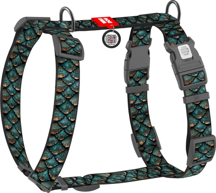 Шлея для собак анатомічна H-подібна WAUDOG Nylon з QR адресником, малюнок "Луска", пластиковий фастекс, XL, Ш 35 мм, А 60-10