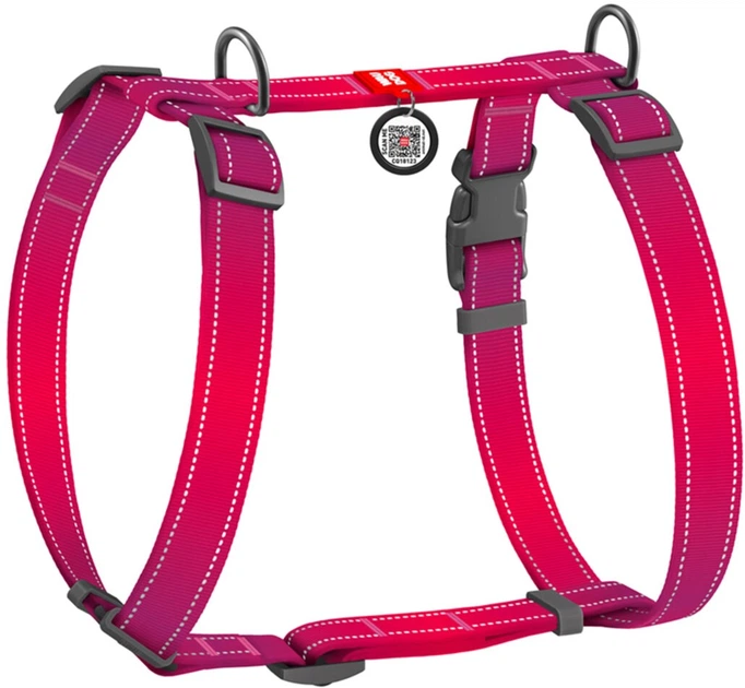 Шлея для собак анатомічна H-подібна WAUDOG Nylon Mono з QR-паспортом світловідбиваюча L Ш 25 мм А 50-90 см В 60-100 см Рожев