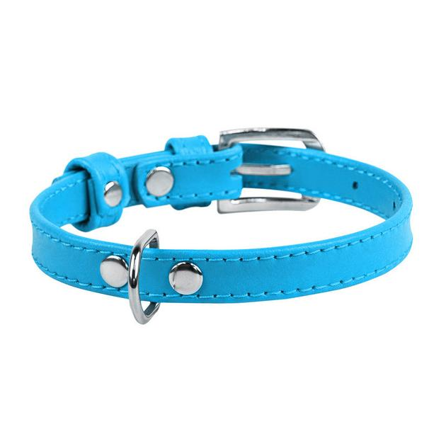 Нашийник для собак шкіряний WAUDOG Glamour без прикрас, Ш 9 мм, Дов 19-25 см, блакитний