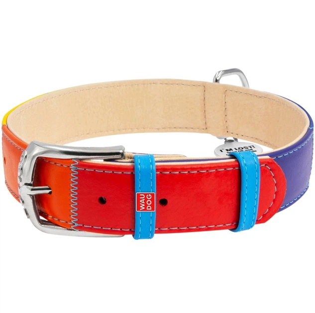 Нашийник для собак шкіряний WAUDOG Glamour з QR паспортом, "Веселка", M, Ш 20 мм, Дов 30-39 см