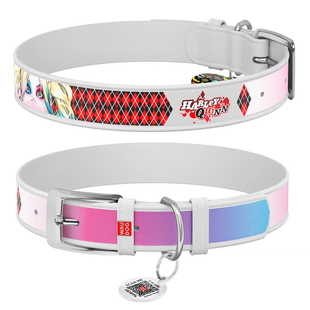 Нашийник для собак шкіряний WAUDOG Design з QR паспортом, Харлі Квін, Ш 25 мм, Д 38-49 см, білий
