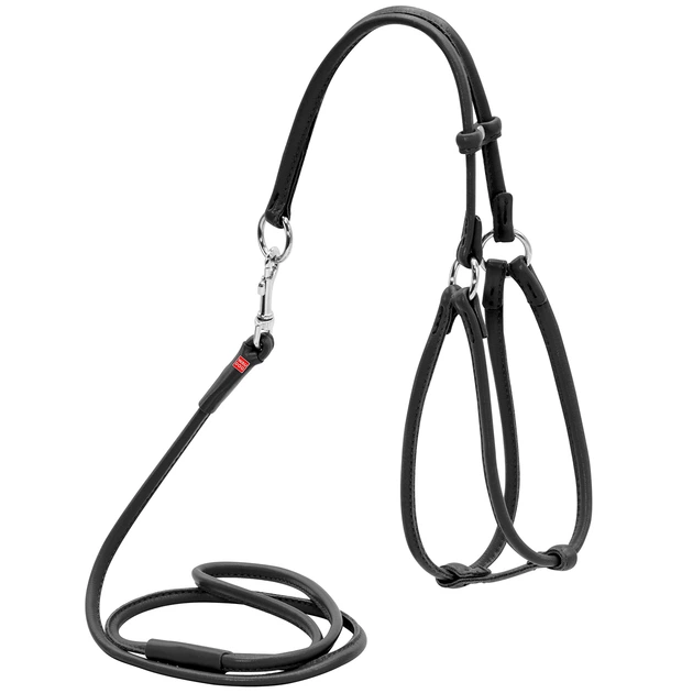 Кругла шкіряна шлея WAUDOG Glamour N1 з повідцем для котів та дрібних собак 105 см 6 мм Чорна (34011)