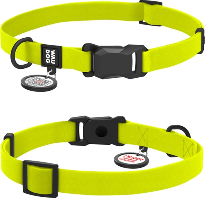 Нашийник для собак водостійкий WAUDOG Magnet з QR паспортом, магнітна пряжка-фастекс, S, Ширина 15 мм, Довжина 26-35 см Лимо
