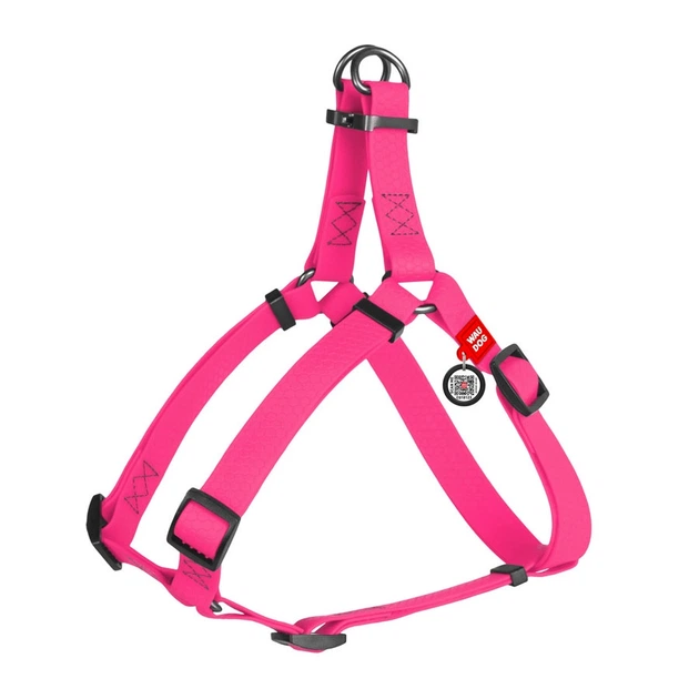 Шлея для собак водостійка WAUDOG Waterproof, з QR-паспортом, металева пряжка-фастекс, XS, Ш 15 мм, Д 30-39 см рожевий