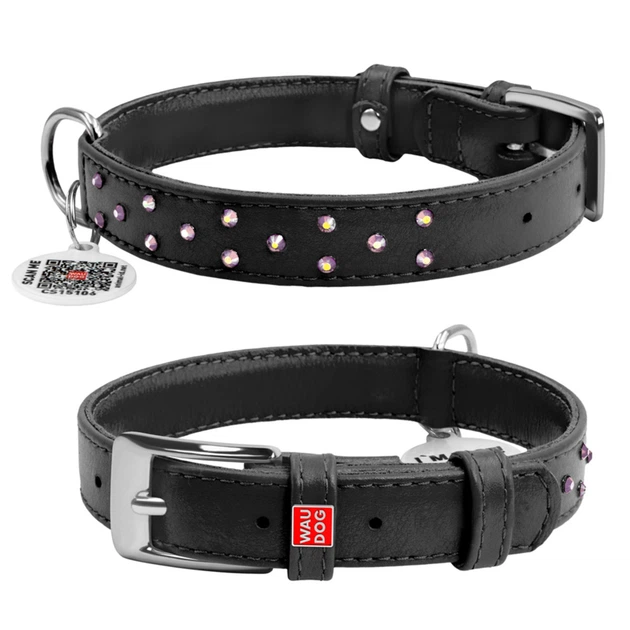 Нашийник для собак шкіряний WAUDOG Glamour з QR паспортом, подвійний зі стразами, M, Ш 20 мм, Д 30-39 см, чорний