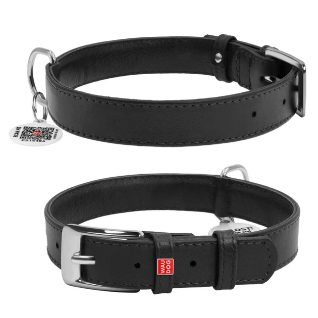 Нашийник для собак шкіряний WAUDOG Glamour з QR паспортом, без прикрас, M, Ш 25 мм, Дл 38-49 см