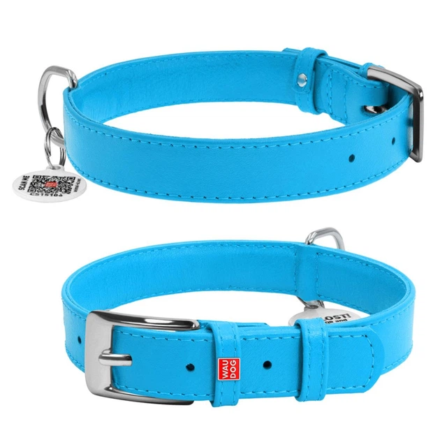 Нашийник для собак шкіряний WAUDOG Glamour з QR паспортом, без прикрас, Ш 25 мм, Дов 38-49 см блакитний