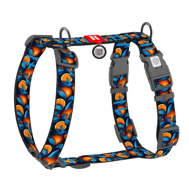 Шлея для собак анатомічна H-подібна WAUDOG Nylon з QR-паспортом, малюнок "Апельсини", з двома фастексами, розмір XL