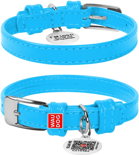 Нашийник для собак шкіряний WAUDOG Glamour з QR паспортом без прикрас XS ширина 12 мм довжина 21-29 см Блакитний (32562)