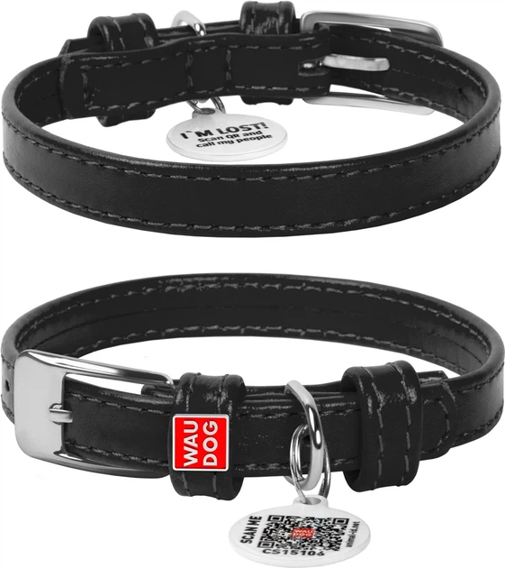 Нашийник для собак шкіряний WAUDOG Glamour з QR паспортом без прикрас XS ширина 12 мм довжина 21-29 см Чорний (32561)