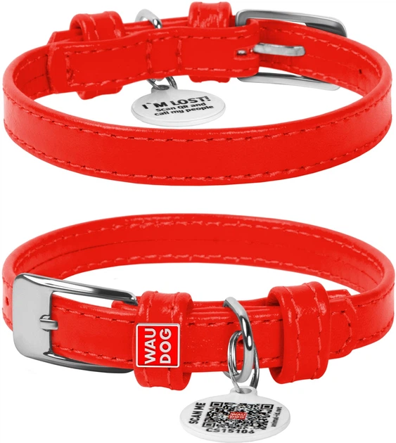Нашийник для собак шкіряний WAUDOG Glamour з QR паспортом без прикрас XS ширина 12 мм довжина 21-29 см Червоний (32563)