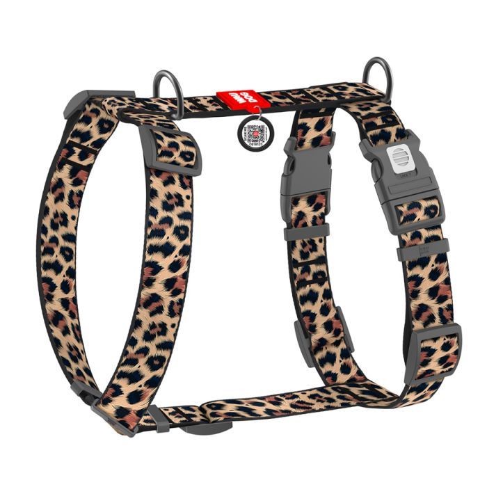 Шлея для собак WAUDOG Nylon анатомічна H-подібна з QR-паспортом "Леопард" пластиковий фастекс, M (344-4066) 344-4066