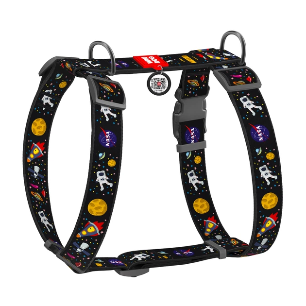 Шлея для собак анатомічна H-подібна WAUDOG Nylon з QR-паспортом, малюнок "NASA", пластиковий фастекс, XL, Ш 35 мм, А 55-95 с