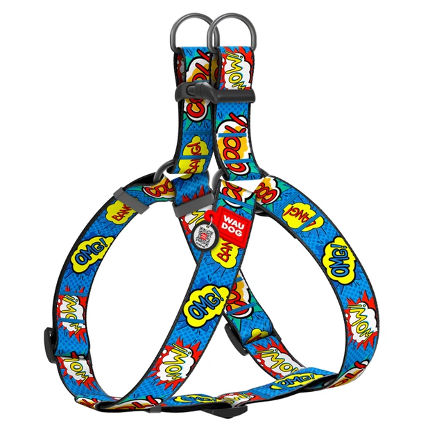 Шлей для собак WAUDOG Nylon з QR паспортом малюнок "ВАУ" пластиковий фастекс XL Ш 35 мм А=В 70-100 см
