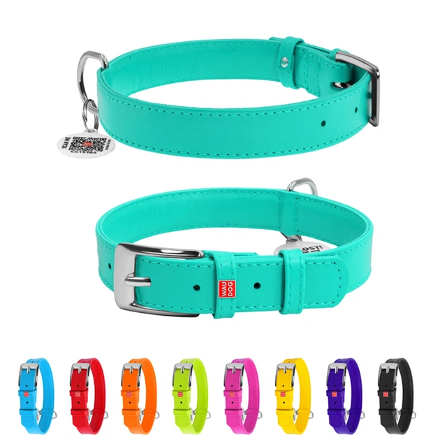 Нашийник для собак шкіряний WAUDOG Glamour з QR паспортом, без прикрас, L, Ш 25 мм, Д 38-49 см, блакитний