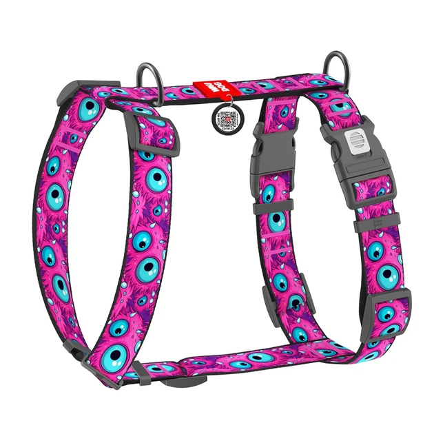 Шлей для собак анатомічний H-подібний WAUDOG Nylon з QR-паспортом, малюнок "Око монстра", пластиковий фастекс, XL, Ш 35 мм,