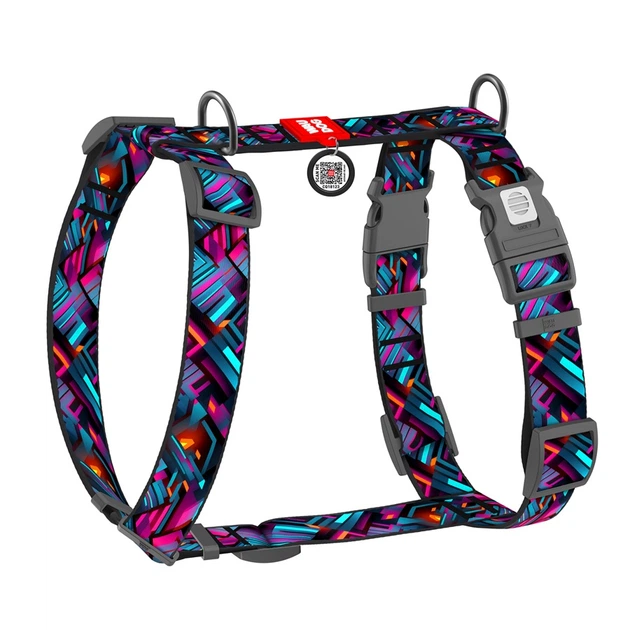 Шлей для собак анатомічний H-подібний WAUDOG Nylon з QR-паспортом, малюнок "Блоки", пластиковий фастекс, XL, Ш 35 мм, A 60-1