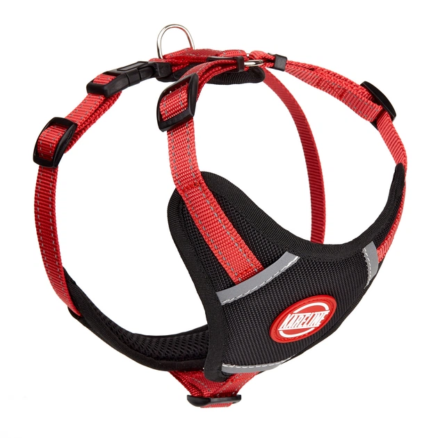 Шлея KareLine з нейлону зі світловідбивною ниткою логотипом та пластиковою пряжкою 25 мм А:500-640 мм В:660-900 мм Червоний