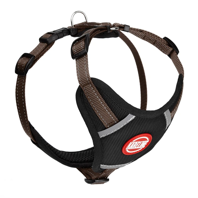 Шлея KareLine з нейлону зі світловідбивною ниткою логотипом та пластиковою пряжкою 25 мм А:500-640 мм В:660-900 мм Коричневи