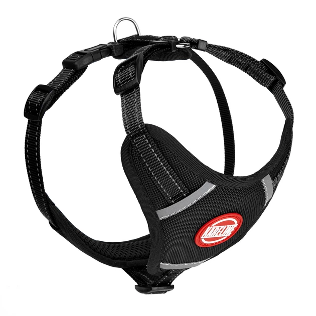 Шлея KareLine з нейлону зі світловідбивною ниткою логотипом та пластиковою пряжкою 25 мм А:500-640 мм В:660-900 мм Чорний