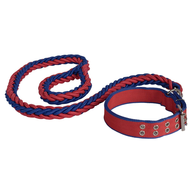 Комплект повідець та нашийник для собак №3 довжина 1.3 м, ширина 2см на 51-64см червоно-синій