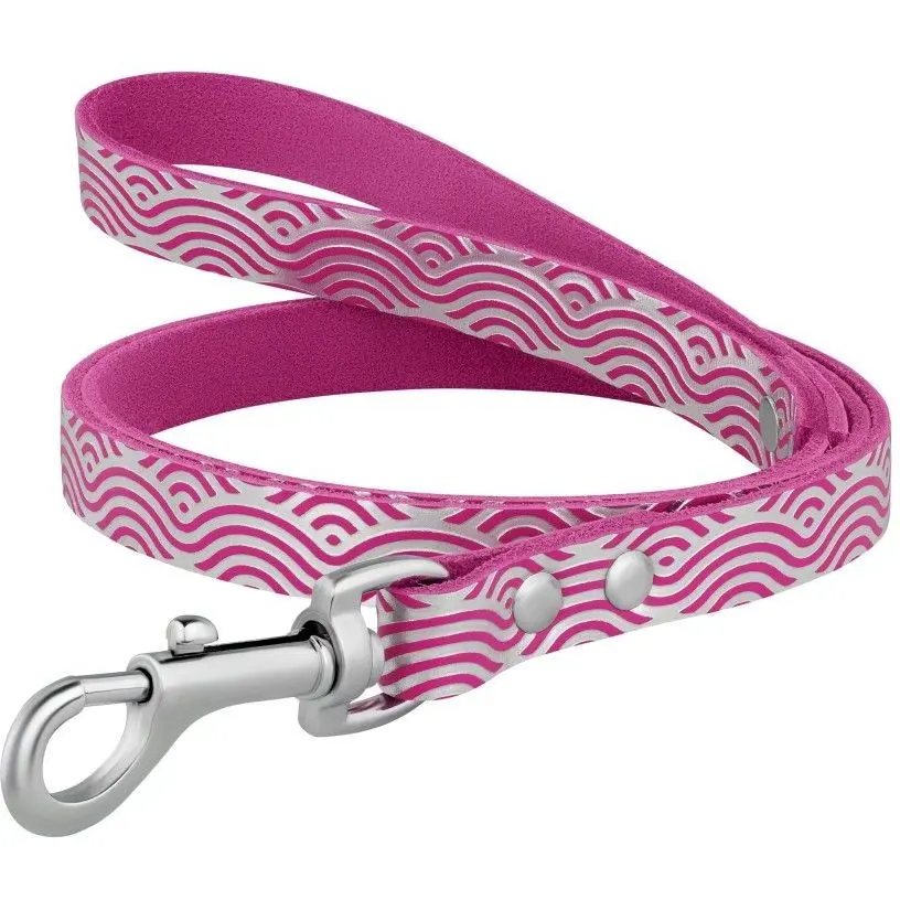 Повідець для собак шкіряний Classic одинарний з срібним тисненням Хвиля М 120х1.2 см рожевий