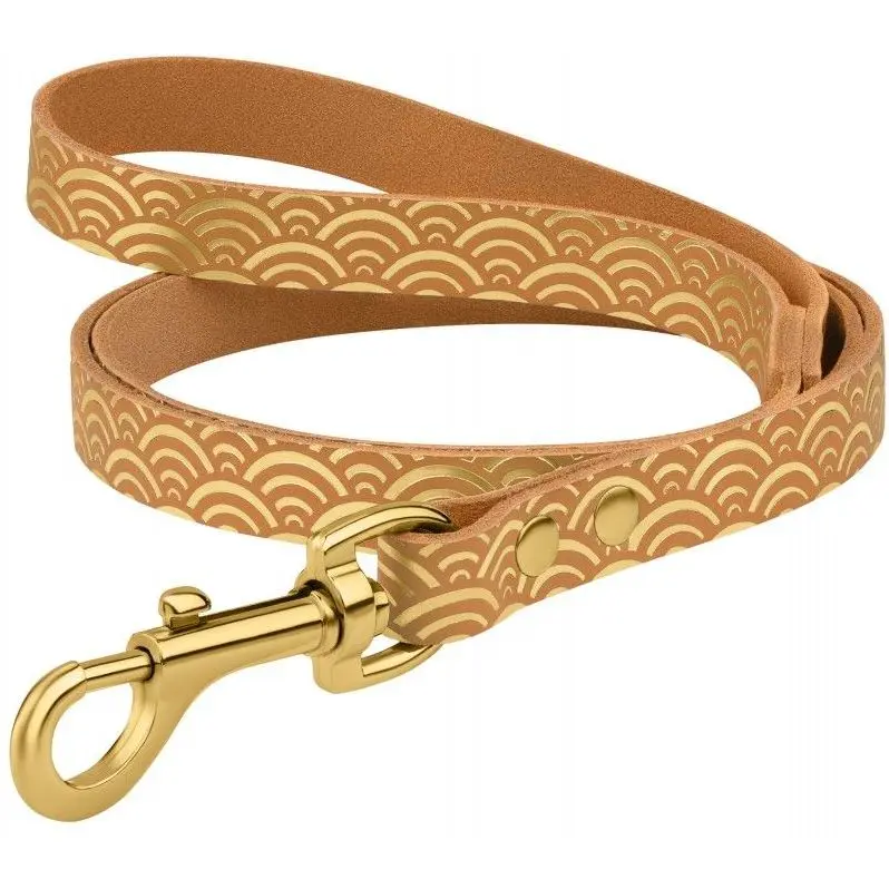 Повідець для собак BronzeDog Barksi Classic шкіряний із золотим тисненням Море М 120х1.2 см гірчиця