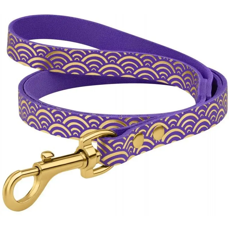 Повідець для собак шкіряний Classic одинарний з золотим тисненням Хвиля М 120х1.2 см фіолетовий