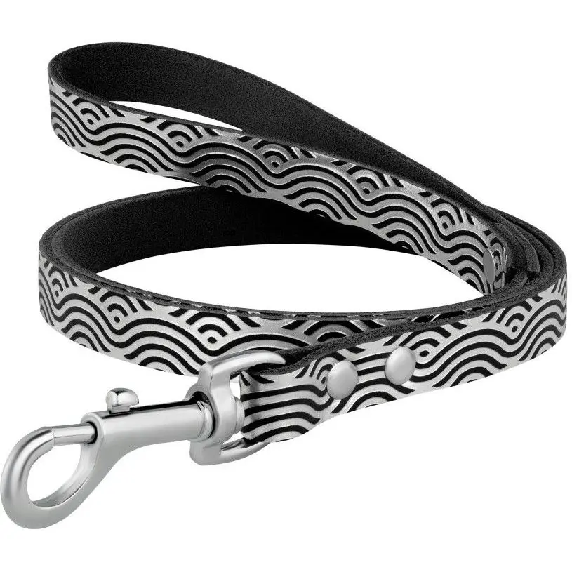 Повідець для собак шкіряний Classic одинарний з срібним тисненням Хвиля М 120х1.2 см чорний