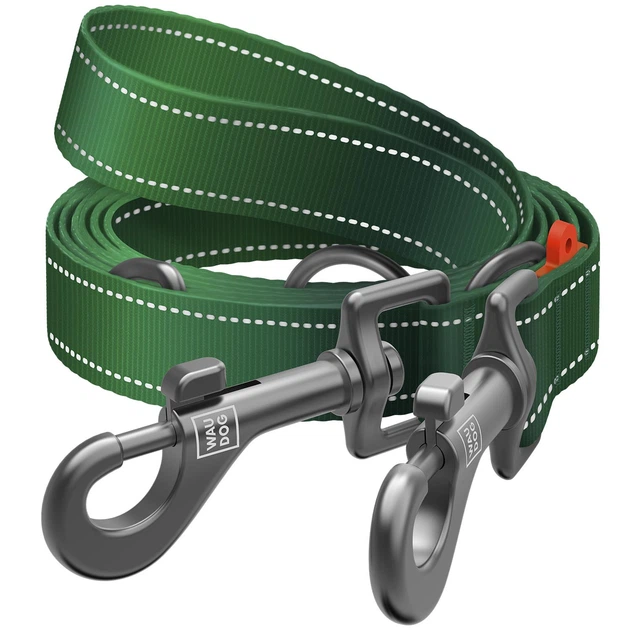 Повідець-перестібка для собак WAUDOG Nylon Mono, світловідбивний, зелений, розмір M, 300 см, 20 мм (464818)