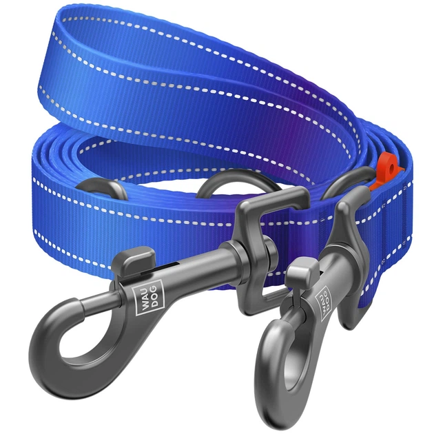 Повідець-перестібка для собак WAUDOG Nylon Mono, світловідбивний, синій, розмір M, 300 см, 20 мм (464812)