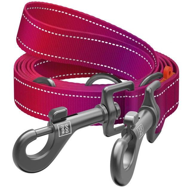 Повідець-перестібка для собак WAUDOG Nylon Mono, світловідбивний, рожевий, розмір M, 300 см, 20 мм (46487)