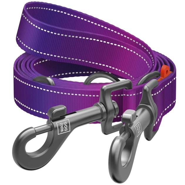 Повідець-перестібка для собак WAUDOG Nylon Mono, світловідбивний, фіолетовий, розмір M, 300 см, 20 мм (46489)