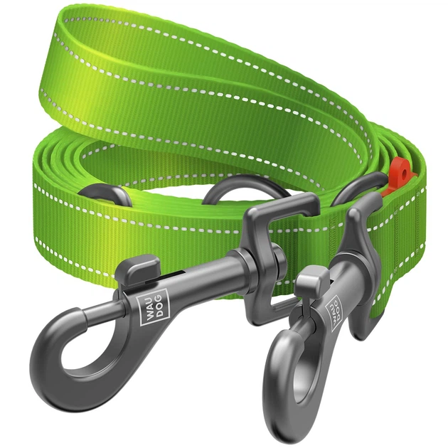 Повідець-перестібка для собак WAUDOG Nylon Mono, світловідбивний, салатовий, розмір M, 300 см, 20 мм (46485)