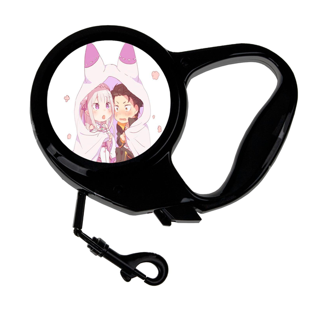 Повідець-рулетка для тварин із принтом Аніме Життя в альтернативному світі з нуля #0002 3 м чорний