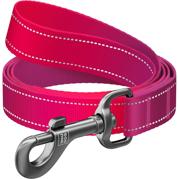 Повідець для собак нейлоновий WAUDOG Nylon Mono світловідбивний, розмір М, 20 мм, 122 см, рожевий