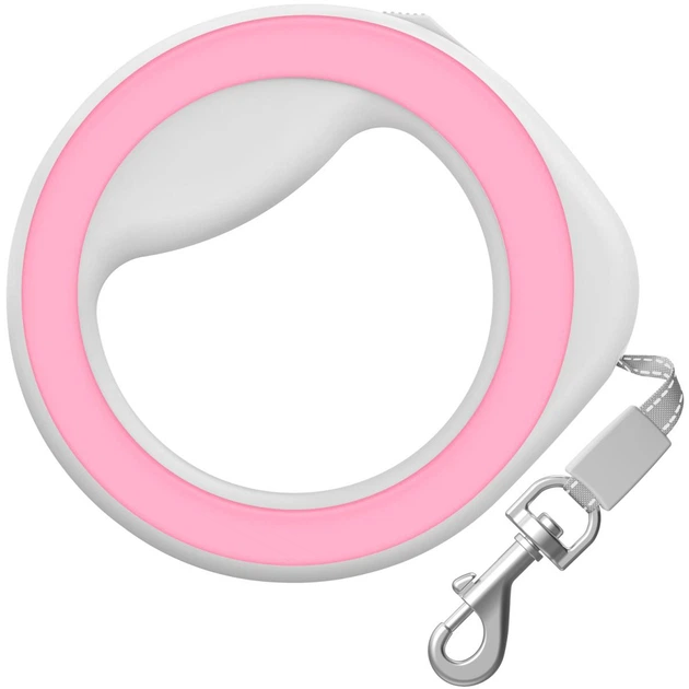 Повідець-рулетка WAUDOG R-leash довжина 2,9 м для собак до 40 кг рожева зі світловідбивною стрічкою
