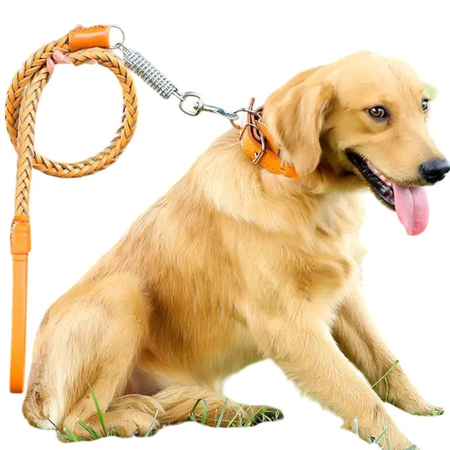 Комплект повідець косичка +нашийник плетений для собак №1 (120см*25-35см), жовтий