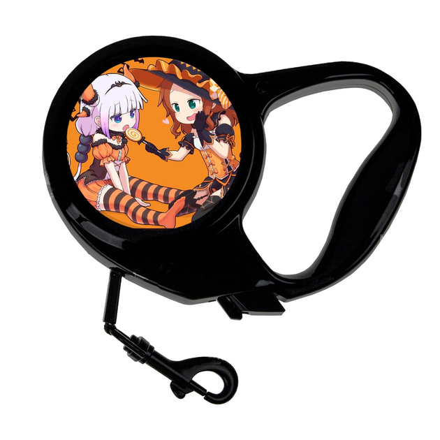 Повідець-рулетка для тварин із принтом Аніме Драконопокоївка пані кобаяші #0005 3 м чорний