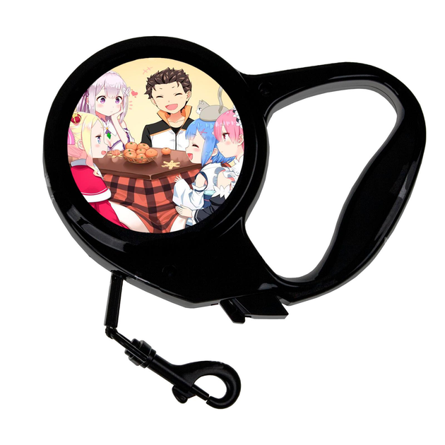 Повідець-рулетка для тварин із принтом Аніме Життя в альтернативному світі з нуля #0019 3 м чорний