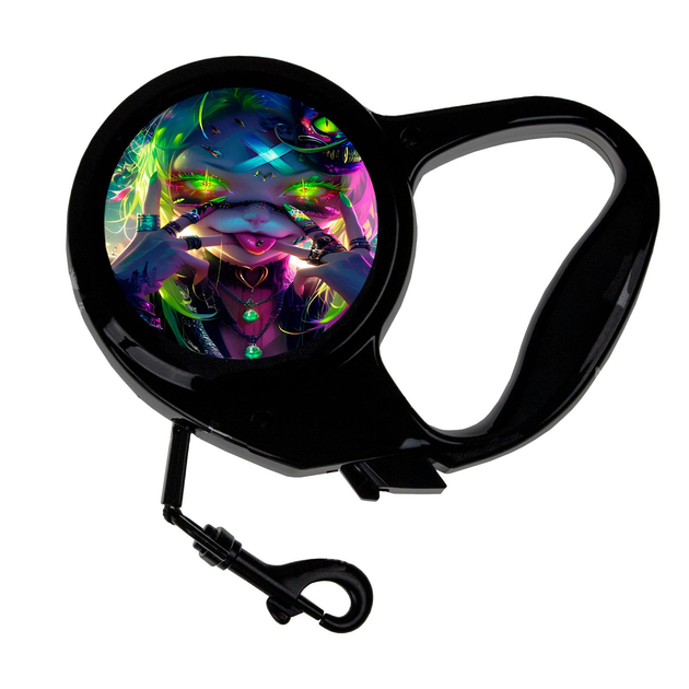 Повідець-рулетка для тварин із принтом Дівчина арт #10 3 м чорний