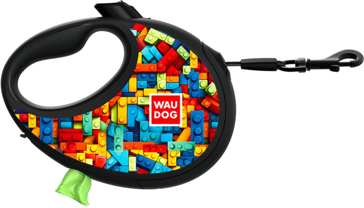 Повідець-рулетка для собак WAUDOG R-leash з контейнером для пакетів, малюнок "Блоки", світловідбивна стрічка, L, до 40 кг, 5